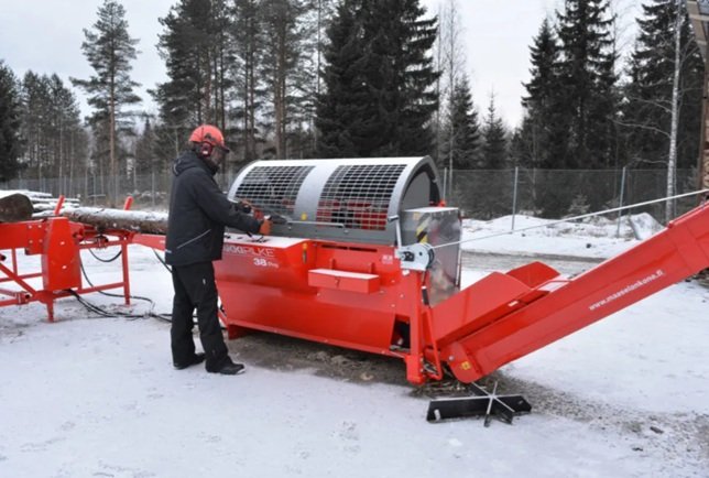 Do provozu putuje výkonný procesor palivového dřeva HakkiPilke 38 Pro Combi společně s podávacím stolem HakkiFeed 472, který výrazně zrychluje a usnadňuje manipulaci se dřevem při práci.